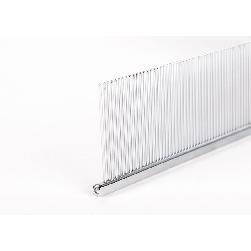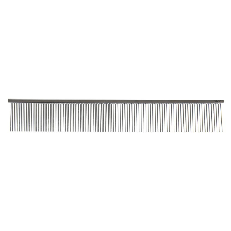 Tento vysoko kvalitný špeciálny hrebeň na strihanie má zuby, ktoré sú také jemné a krásne upravené, že umožňujú dokonalé zdvihnutie a oddelenie srsti, čím dodávajú objem a vytvárajú dokonalý základ pre hladké a presné strihanie nožnicami. Tento hrebeň nadvihuje srsť ako žiadny iný a robí strihanie jednoduchým a efektívnym. Špeciálny hrebeň na nožnice je dlhý 23 cm s 32 mm rozostupmi zubov v kombinácii jemných a hrubých zubov a je povrchovo upravený ultra hladkým niklom. Tento dlhší model sa vyznačuje vynikajúcou rovnováhou a extra dĺžkou pre dlhú hustú srsť.