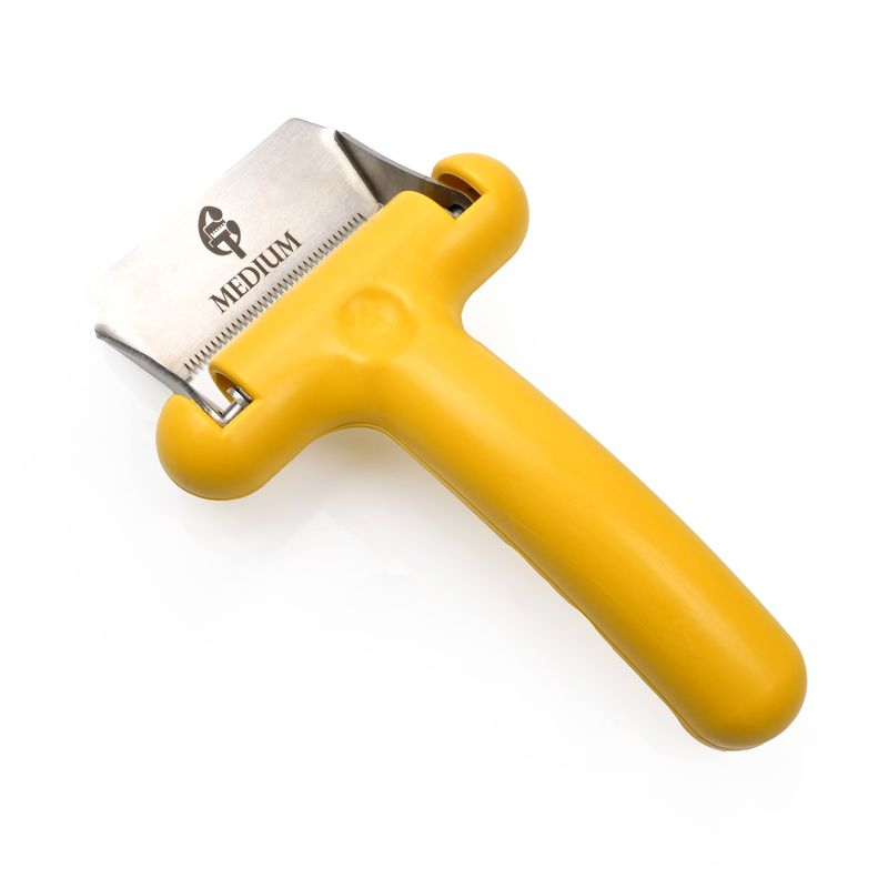 Tento „česací“ nástroj  Coat tender, vyrobený v USA s prémiovými čepeľami z nehrdzavejúcej ocele, účinne odstraňujú uvoľnenú srsť, podsadu a odumreté chlpy bez toho, aby spôsobovali podráždenie pokožky alebo poškodenie srsti ako pri bežnom trimovaní. Patentovaná prednastavená šikmá čepeľ a flexibilná rukoväť ponúkajú bezkonkurenčnú kontrolu a znižujú namáhanie rúk počas dlhého trimovania.